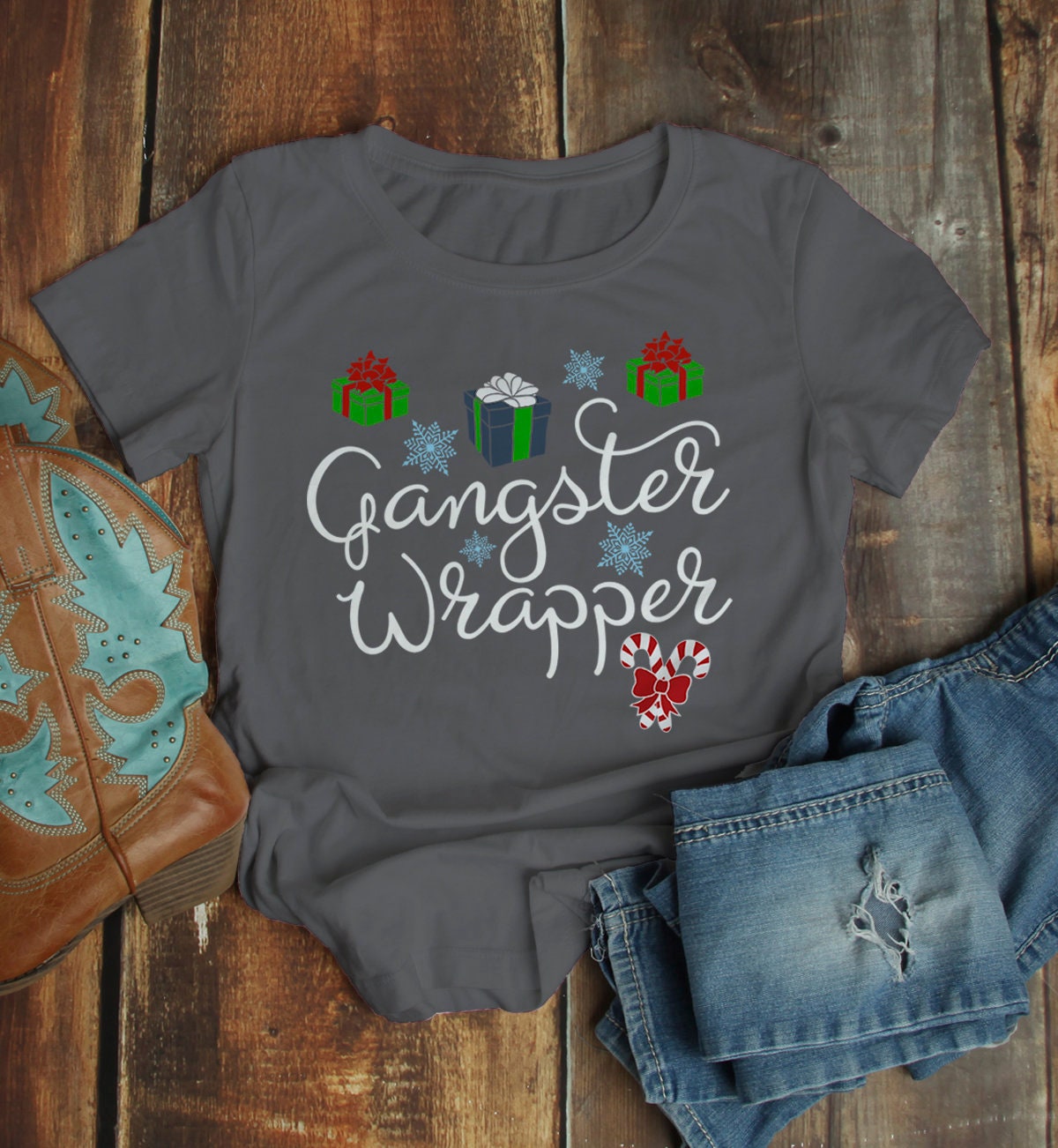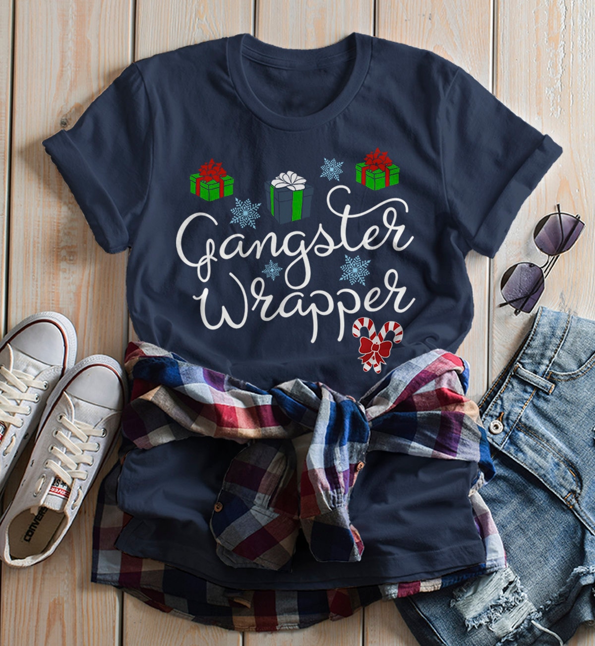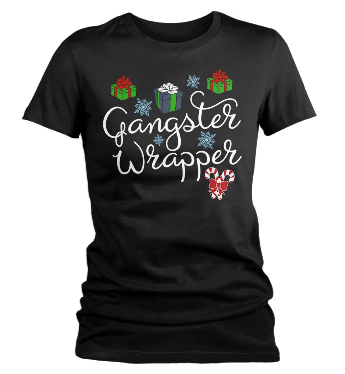 Women's Funny Gangster Wrapper T Shirt Christmas Shirts Wrapping Presents Graphic Tee