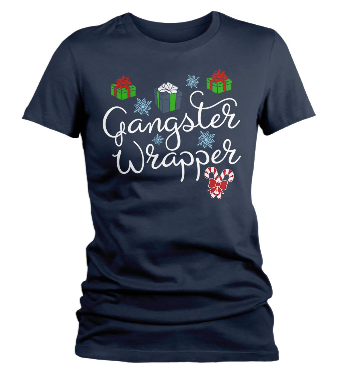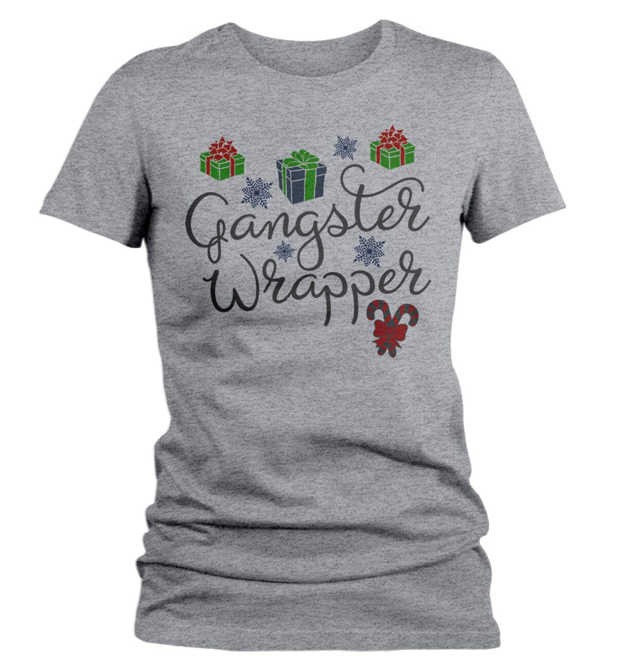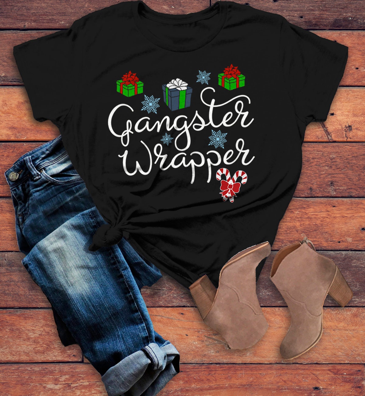 Women's Funny Gangster Wrapper T Shirt Christmas Shirts Wrapping Presents Graphic Tee