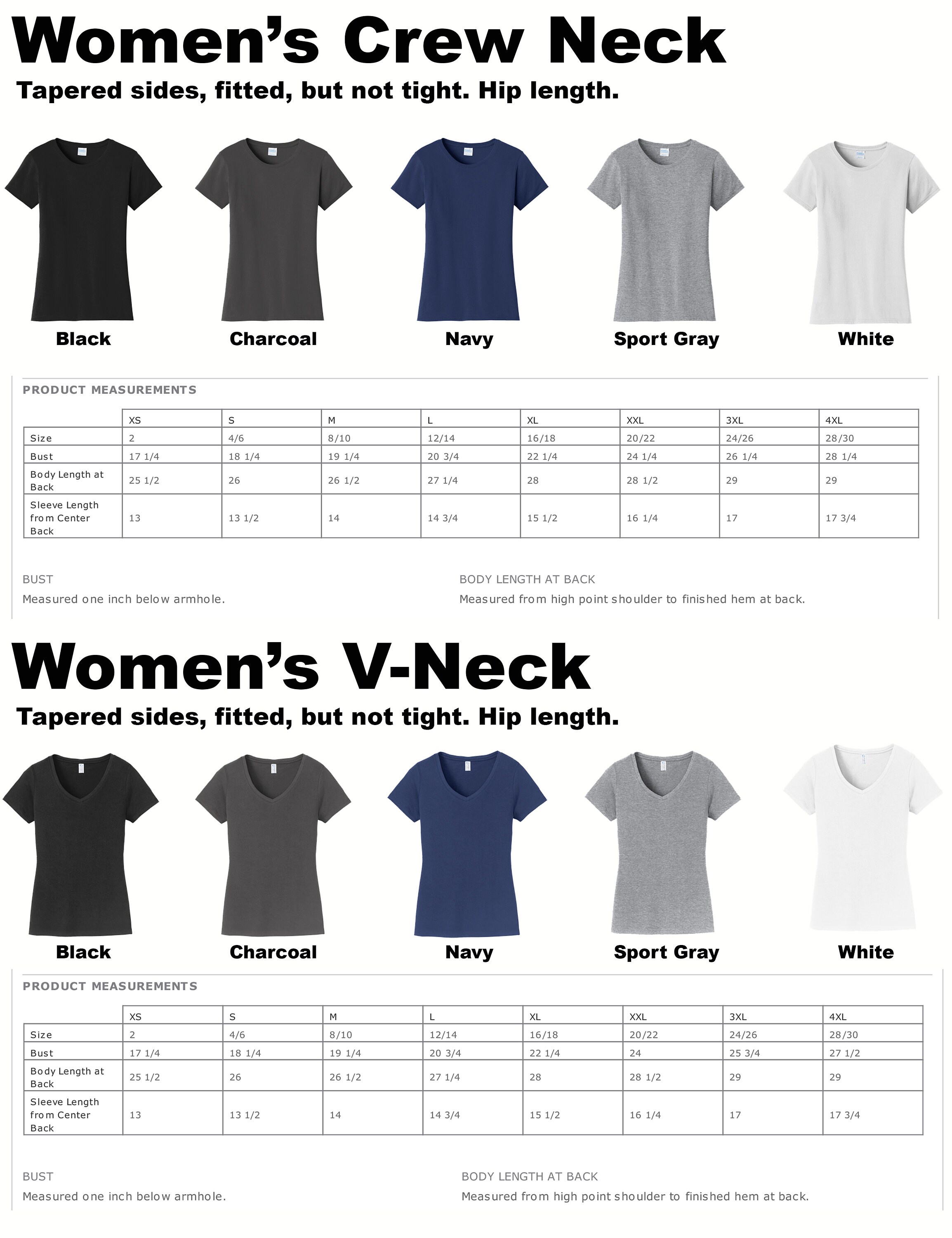 Our women's tee is a relaxed fit, yet still tapered through the waist to show off some curves.