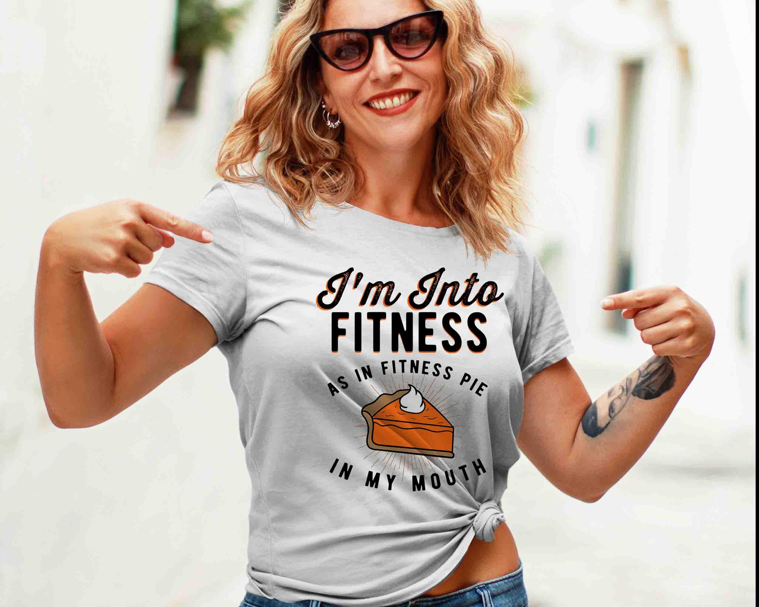 Women's Funny Pie T Shirt Thanksgiving Shirts Into Fitness Pie In Mouth Workout Tee Turkey Day TShirt V Neck Or Crew