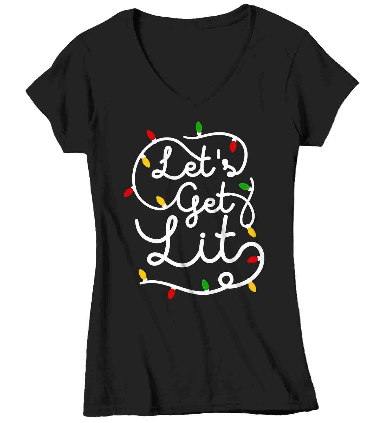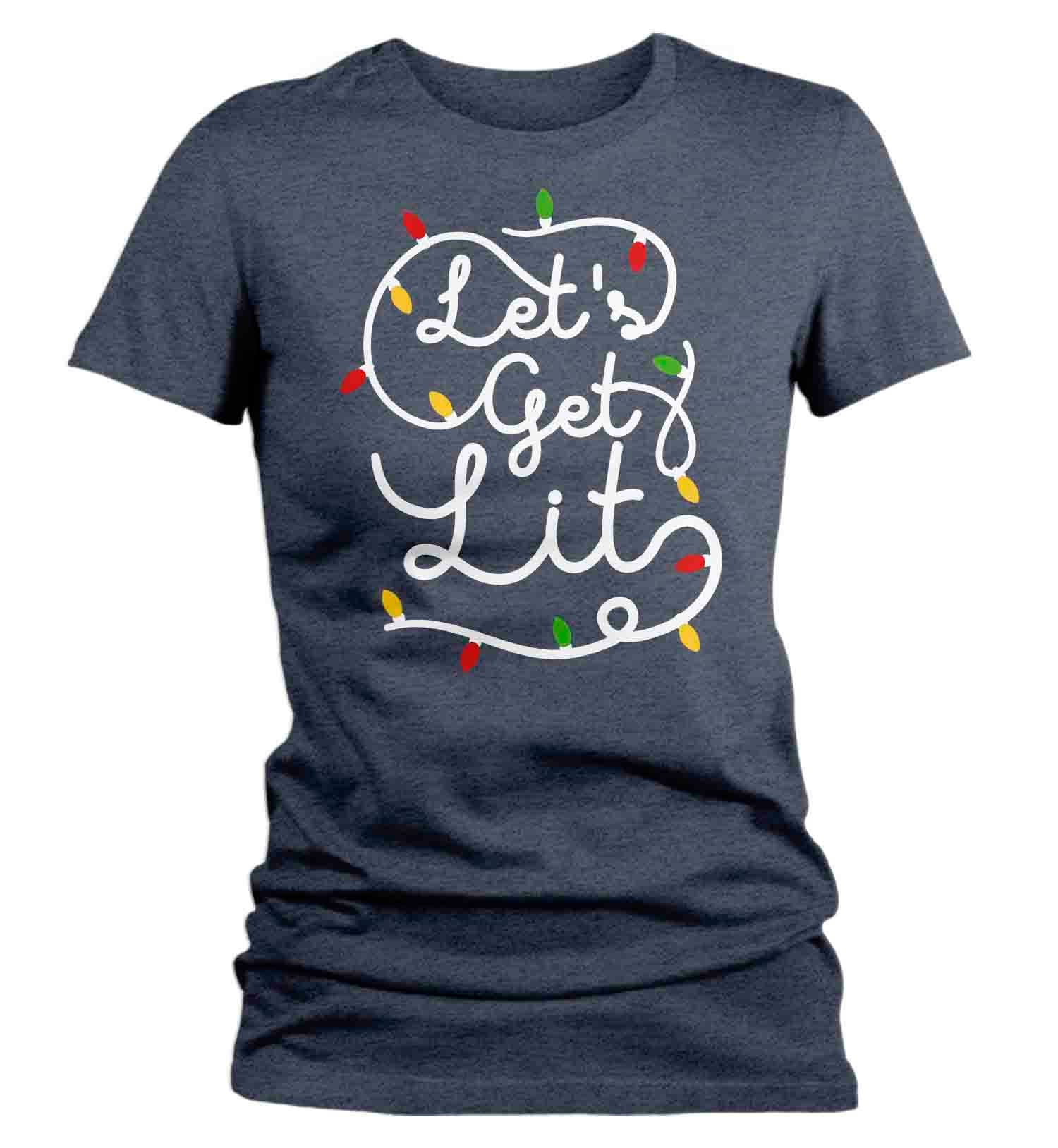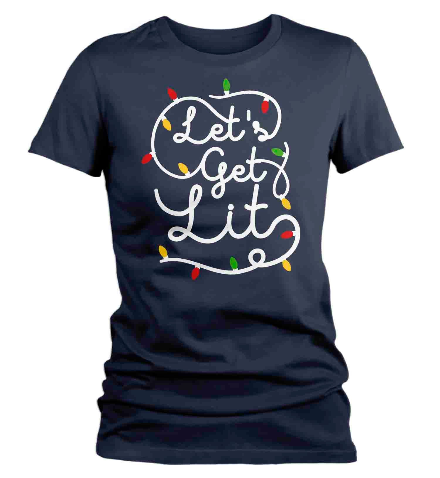 Women's Christmas Lights T Shirt Let's Get Lit Shirt Christmas Shirt Drinking Shirt Party Shirt Funny Christmas Shirt