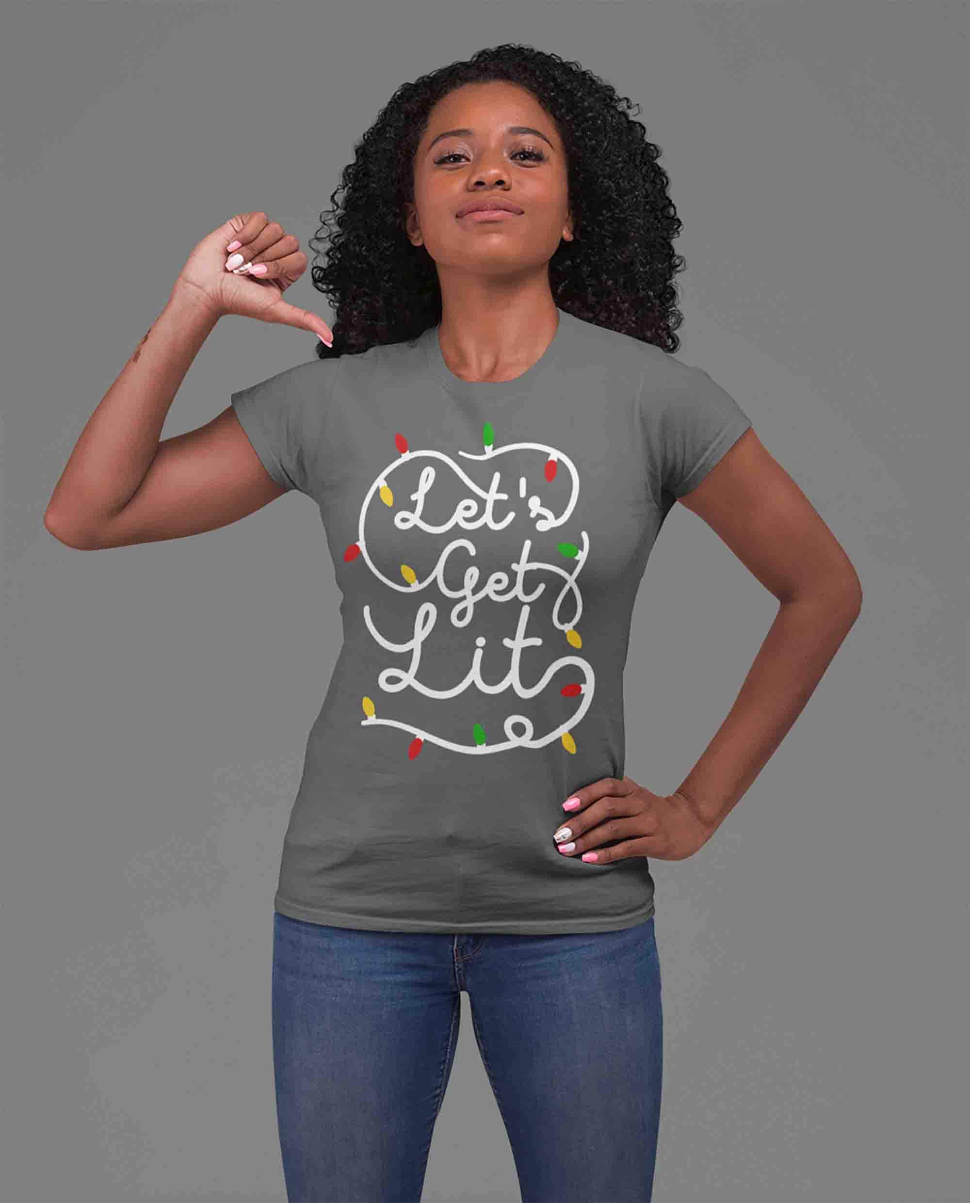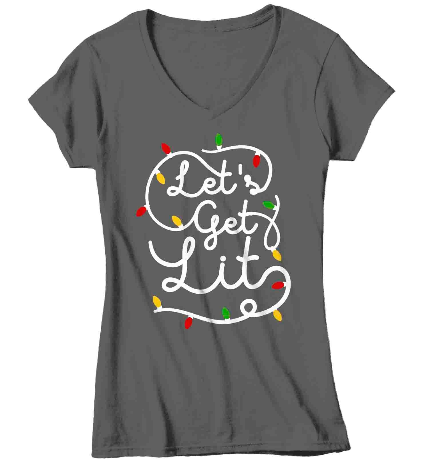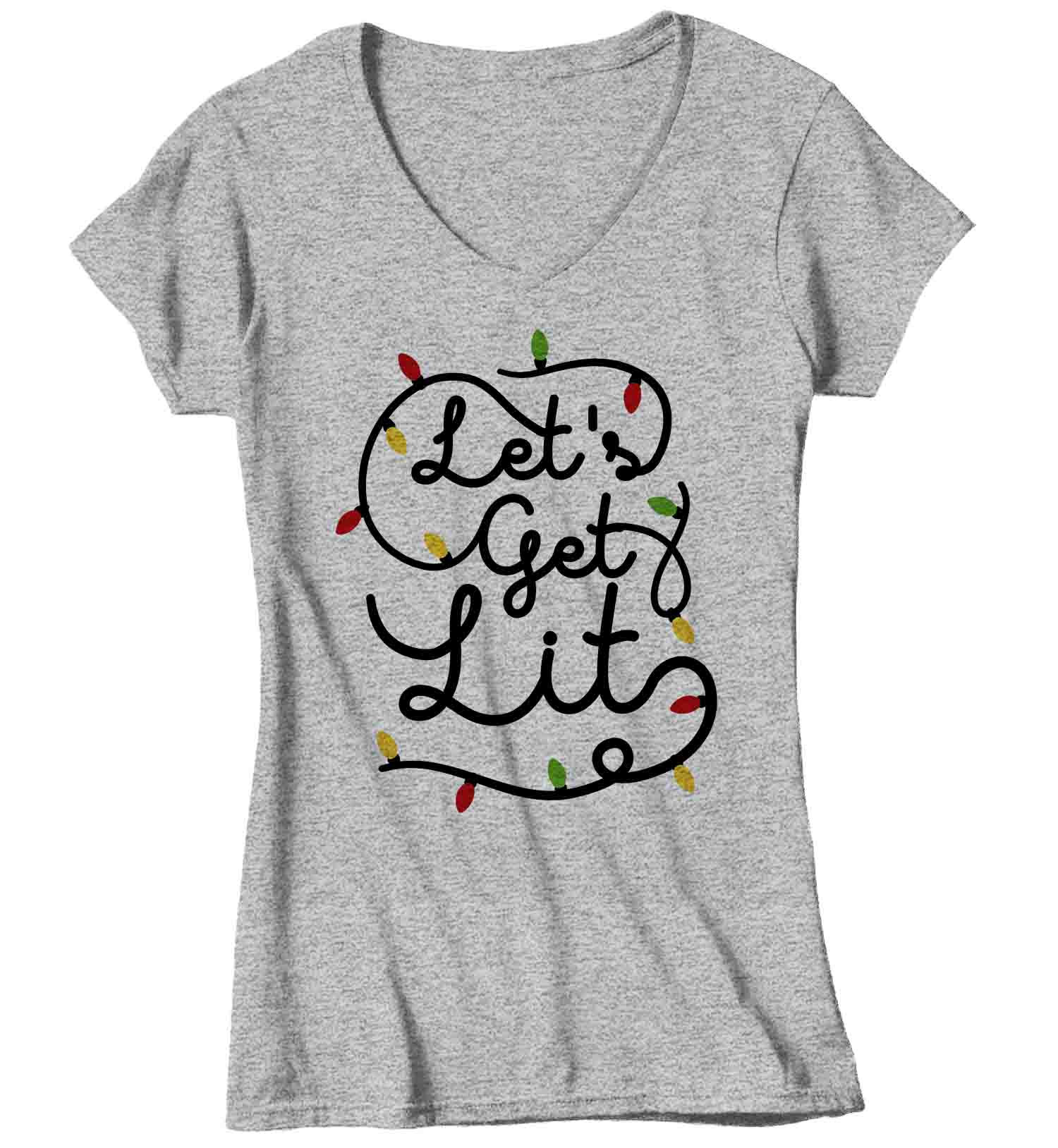 Women's Christmas Lights T Shirt Let's Get Lit Shirt Christmas Shirt Drinking Shirt Party Shirt Funny Christmas Shirt