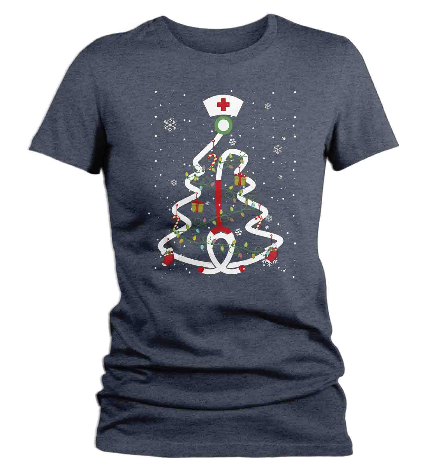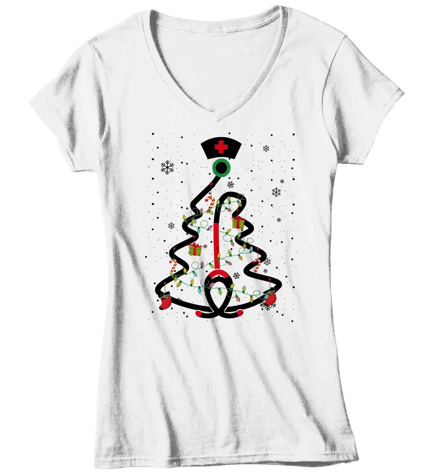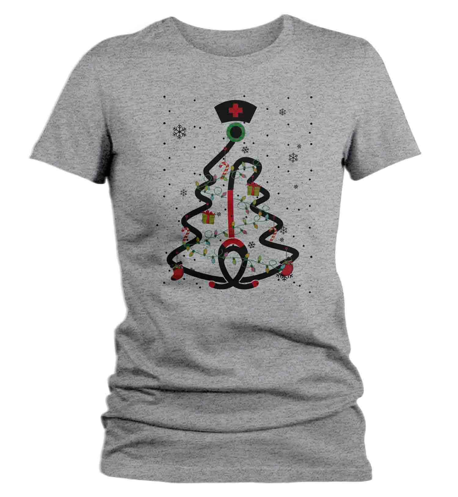 Women's Nurse Christmas T Shirt Christmas Tree Shirts Stethoscope Nurse Shirt Nurses Christmas Shirt