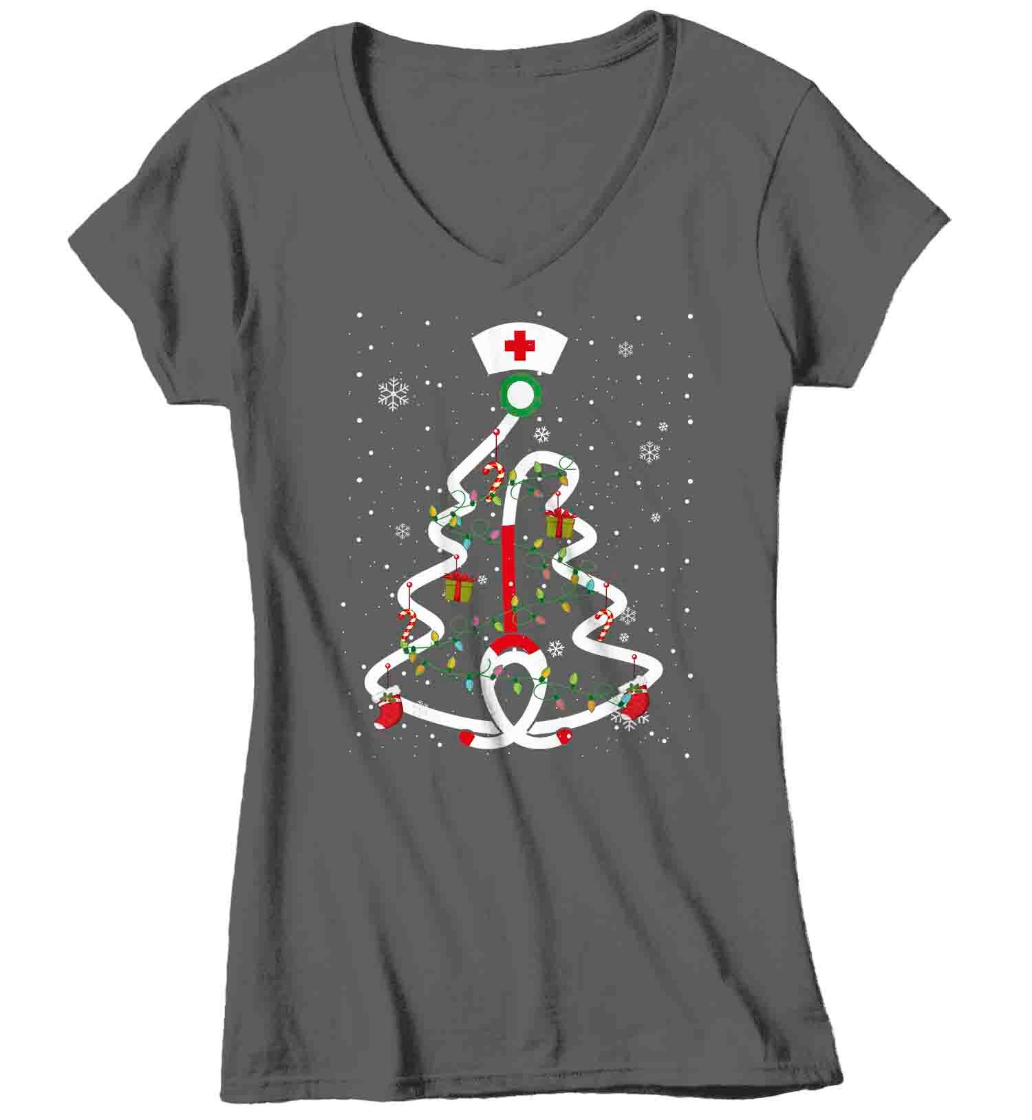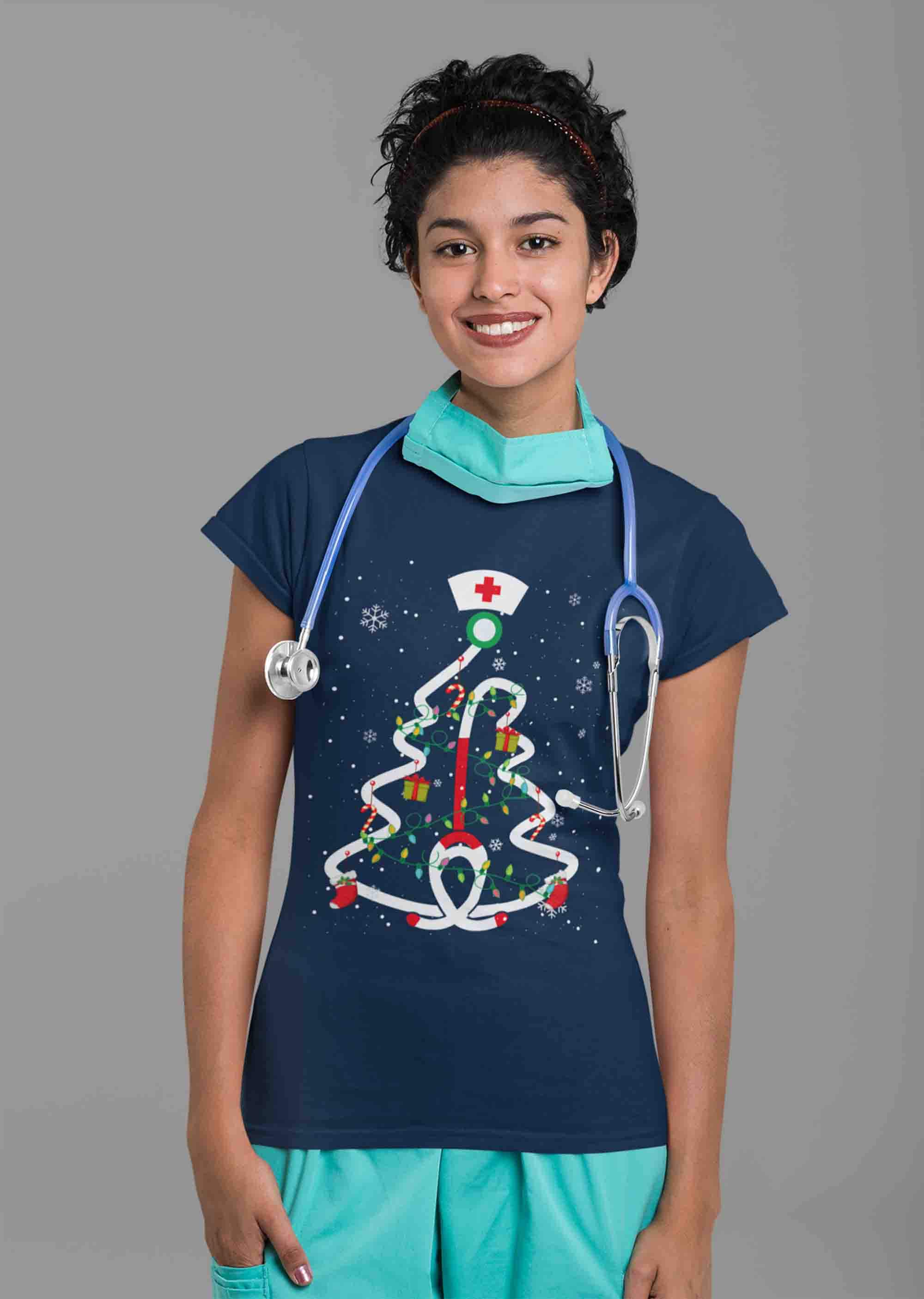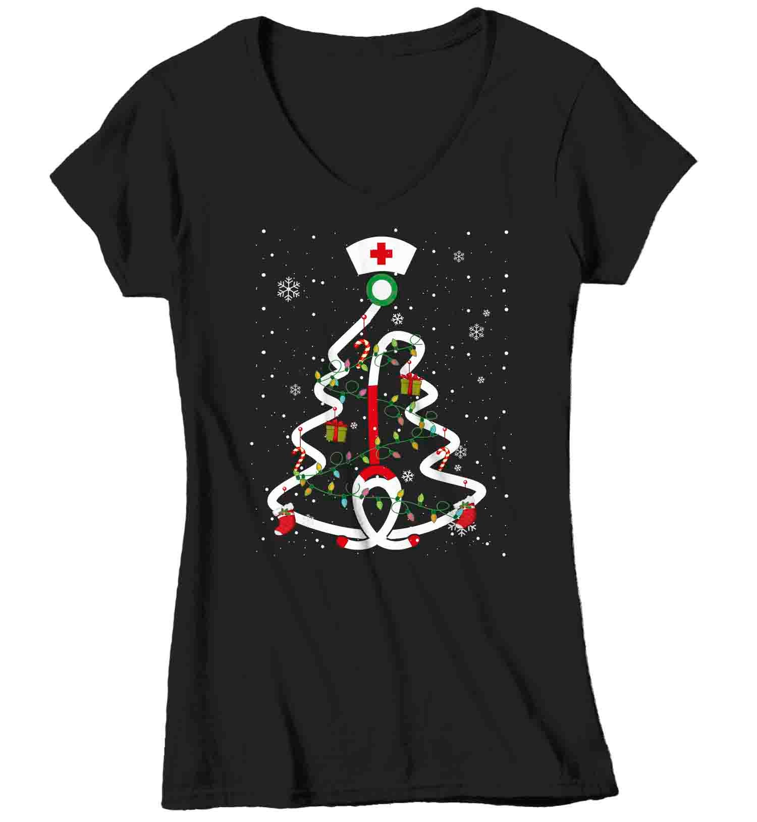 Women's Nurse Christmas T Shirt Christmas Tree Shirts Stethoscope Nurse Shirt Nurses Christmas Shirt
